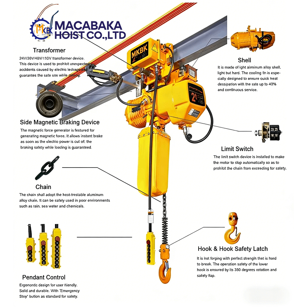 Equipped with a limit switch and reliable braking system to ensure safe lifting operations.