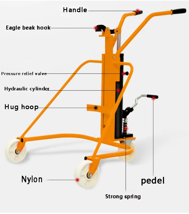 3. The hydraulic spring used in the oil drum truck has the characteristics ofstrong toughness, suitable elasticity, stable rebound speed, etc., whichmakes the operator more comfortable and convenient when operating the oil drum truck